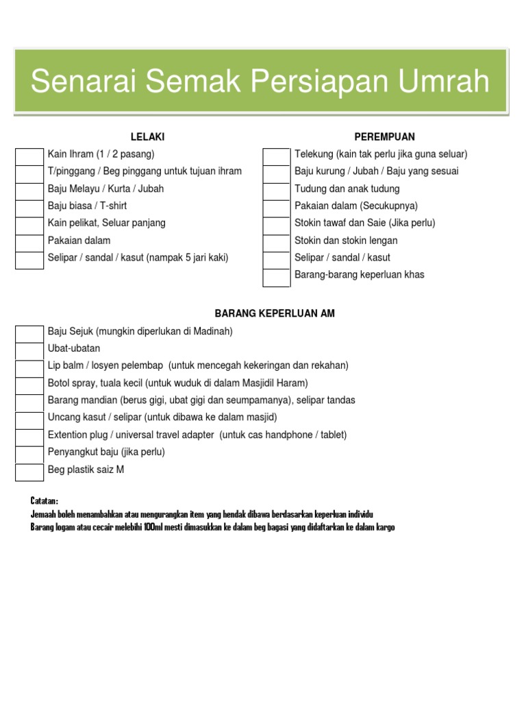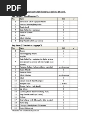 Senarai Keperluan Umrah Jemaah Lelaki Pdf